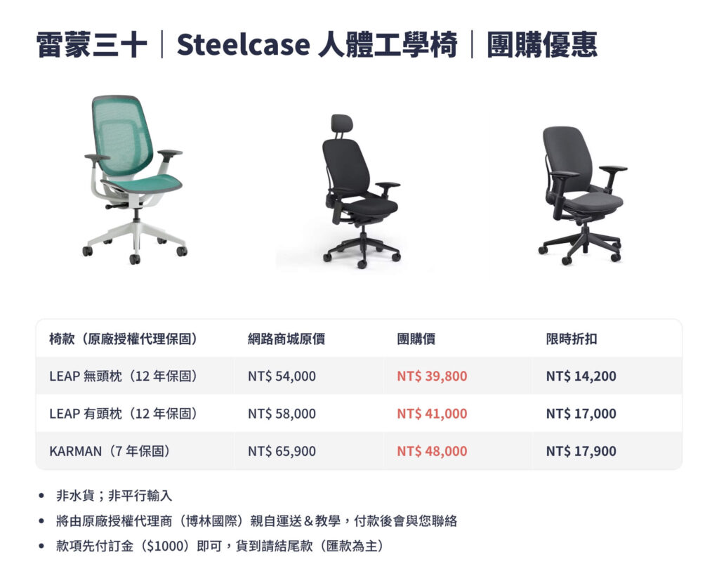 ▍Steelcase 人體工學椅團購優惠網站(含表格比較):https://bbr-gobuy.1shop.tw/Raymond30