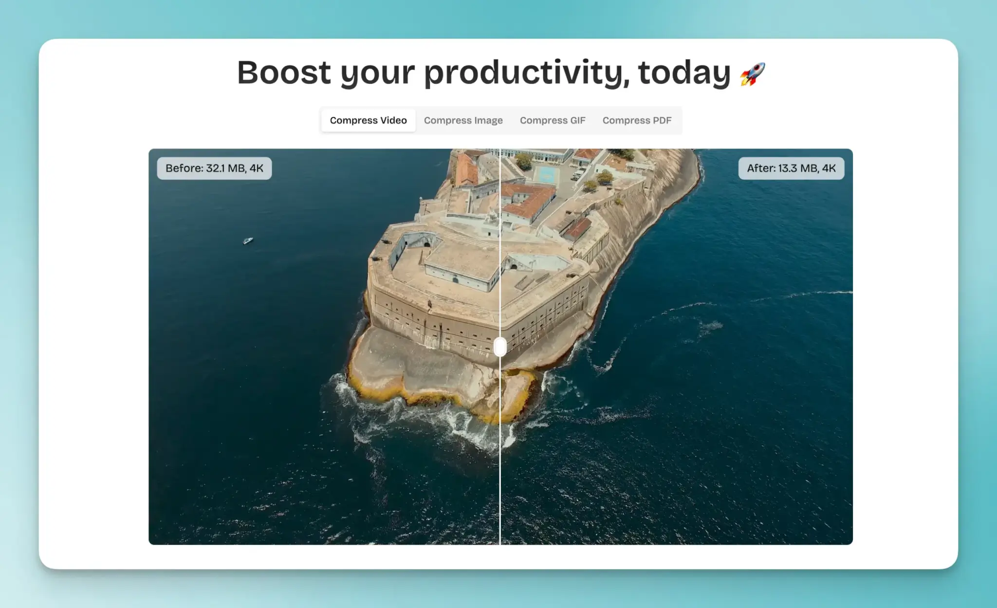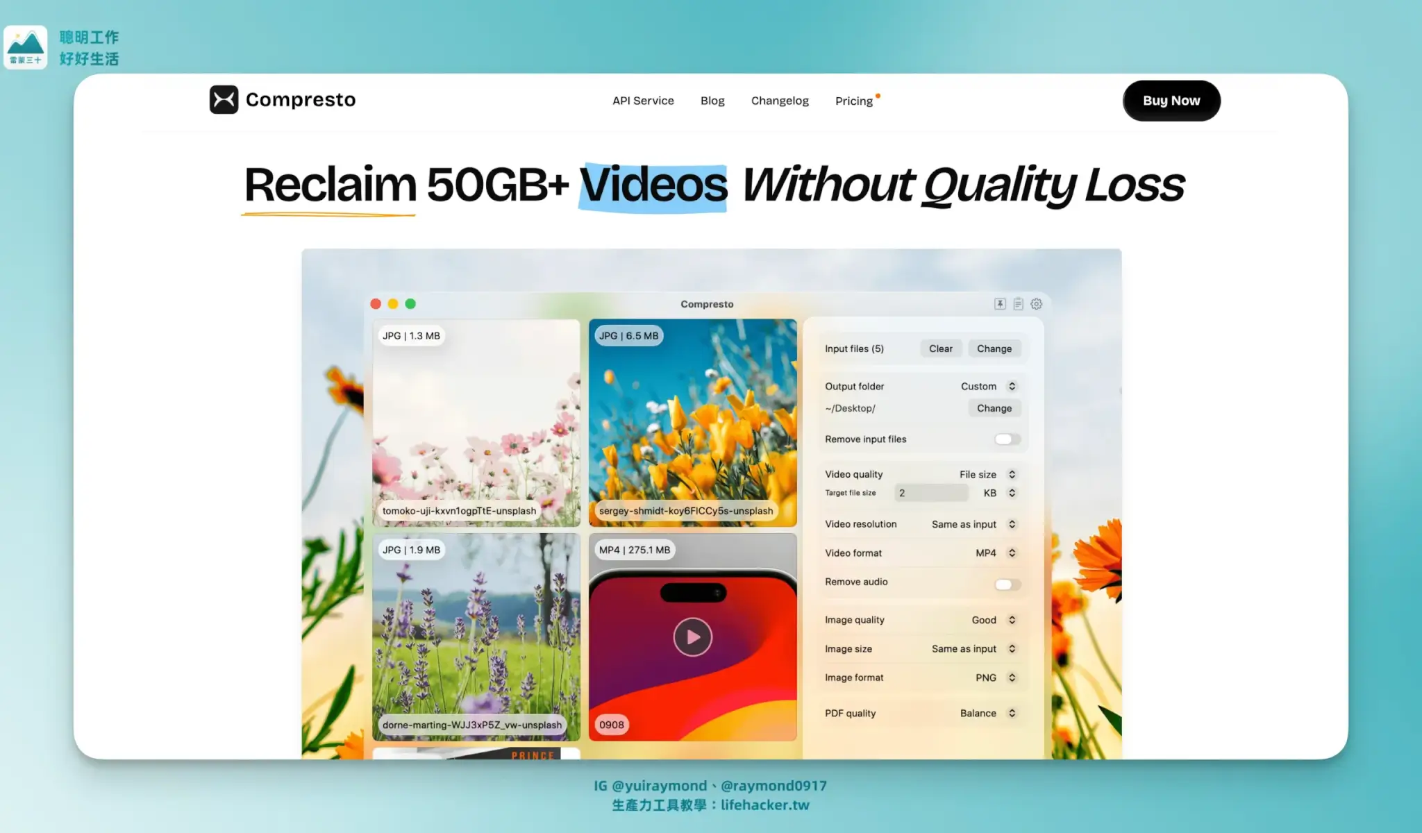 但做得很到位:影片、圖片、PDF、GIF 通通支援,而且壓縮率最高可達 90%,畫質卻幾乎看不出差異!