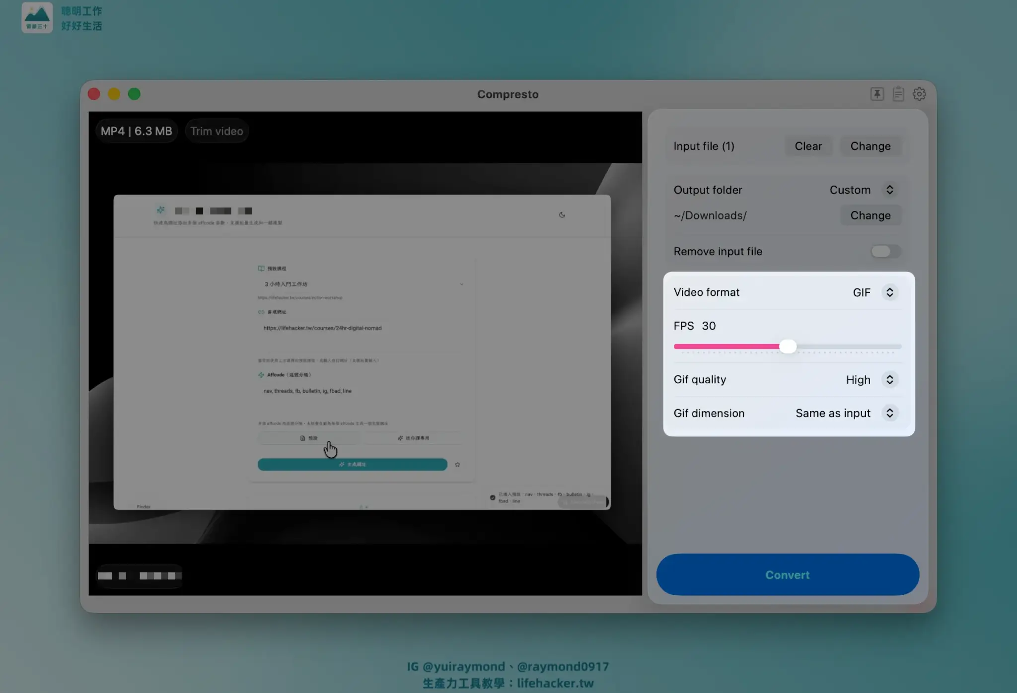 Compresto 還內建了影片轉 GIF 的功能,使用者可以輕鬆截取影片片段,轉換為適合在社群媒體、即時通訊中傳播的 GIF 動圖。