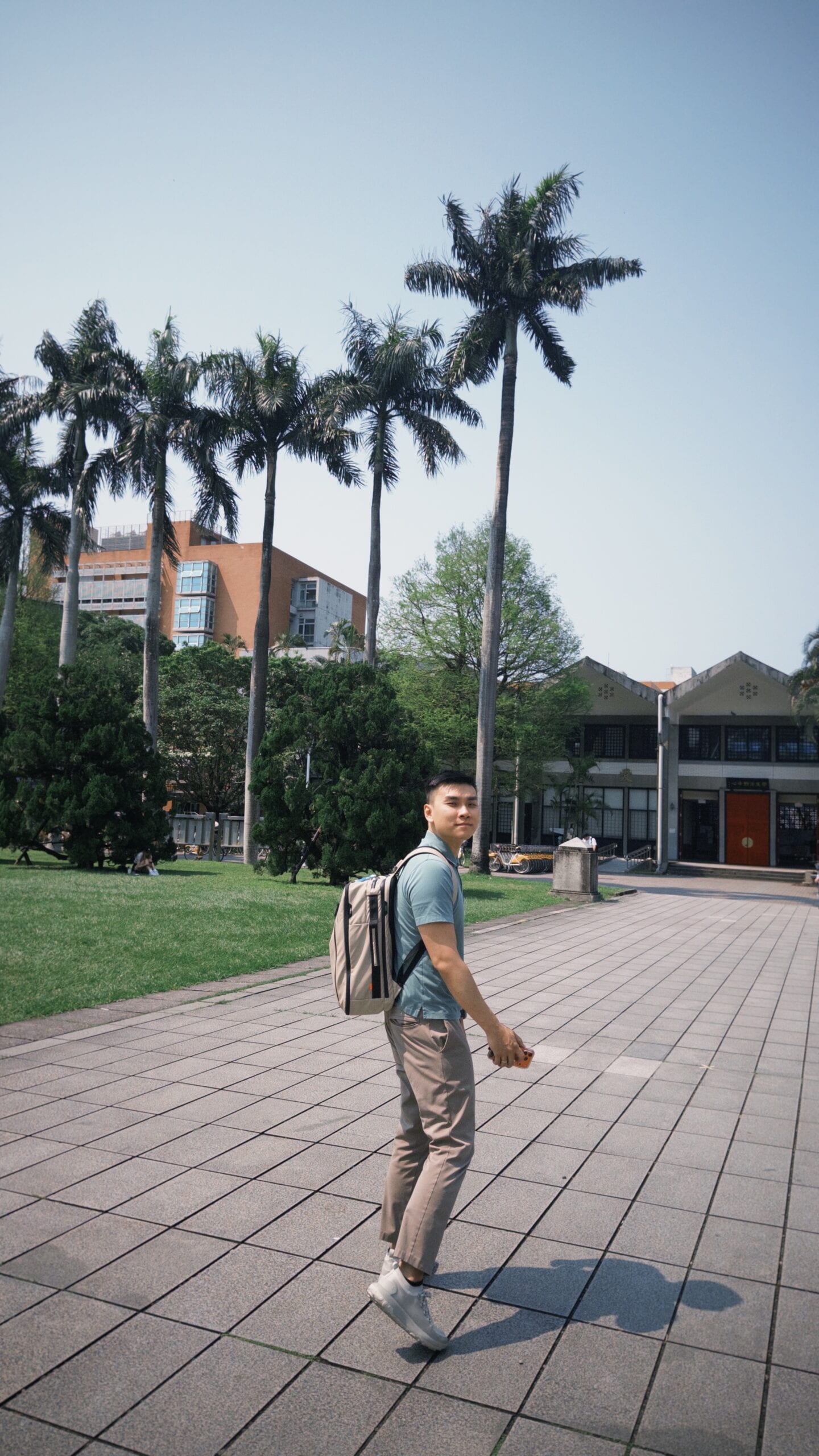台大平日的校園人很多,學生、附近來散步的居民、腳踏車、汽車。但路線規劃得蠻好的,不會覺得混亂。走到總圖書館前面的時候,畫面突然變得很鬆。樹蔭底下、草皮上,散落地坐著正在聊天、放鬆的人。有人看書,有人發呆,很像年初時去紐西蘭南島看到的畫面。