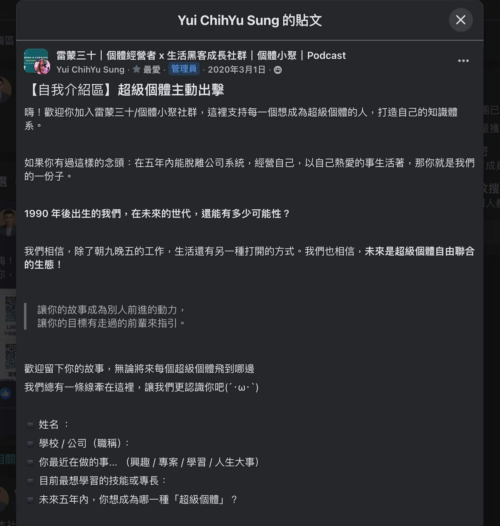 六前前的我們,從臉書社團開始經營社群,有趣的是,當時就用了「超級個體」這個概念,回頭看才發現,原來走過的路都算數,都持續累積著。